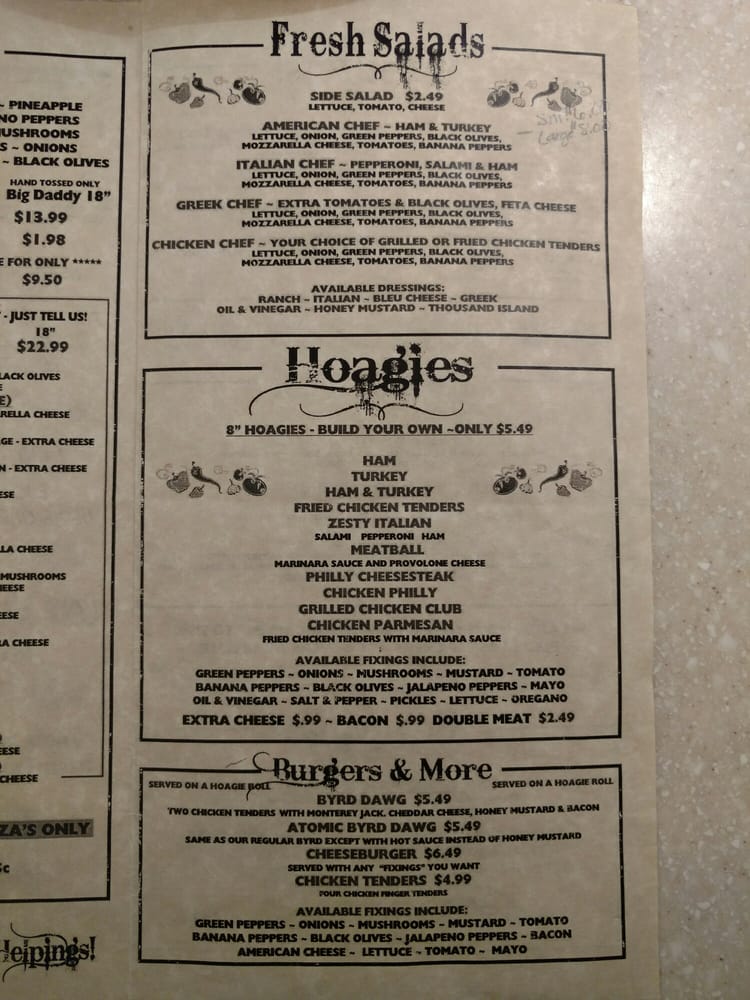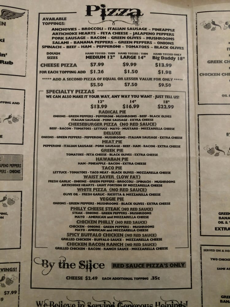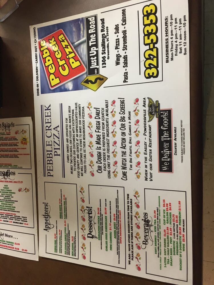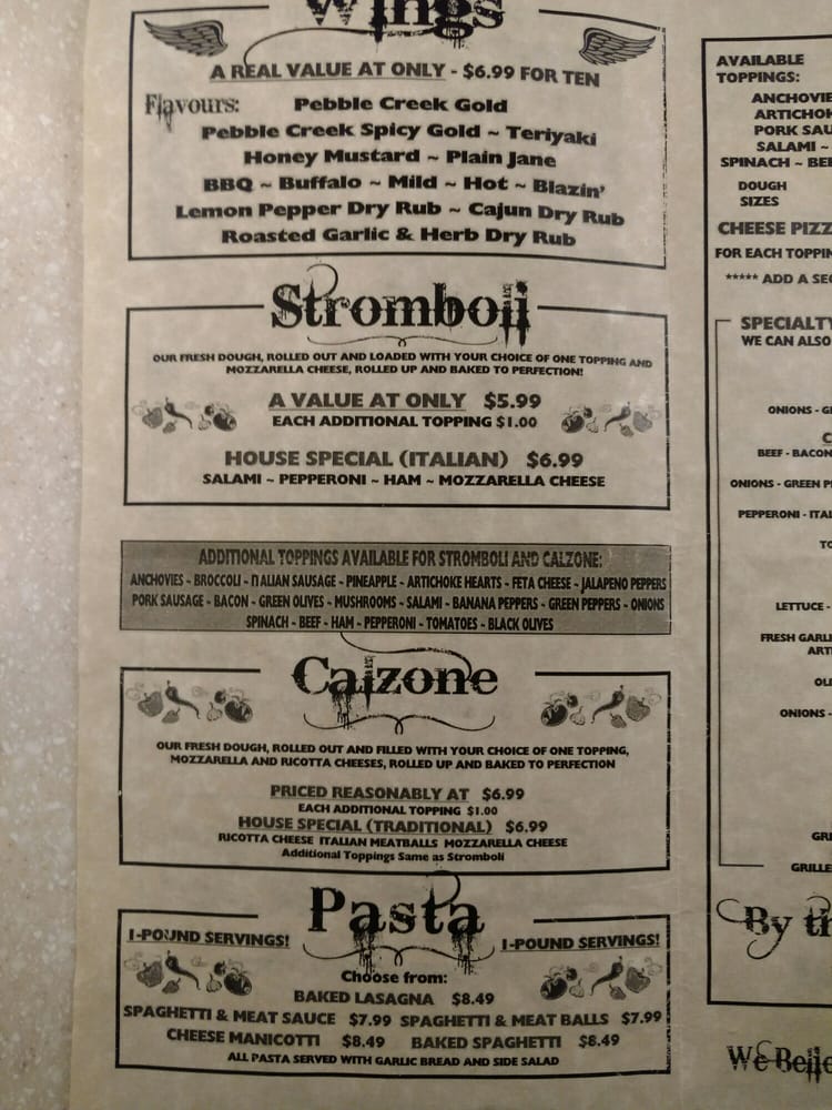 Pebble Creek Pizza Menu